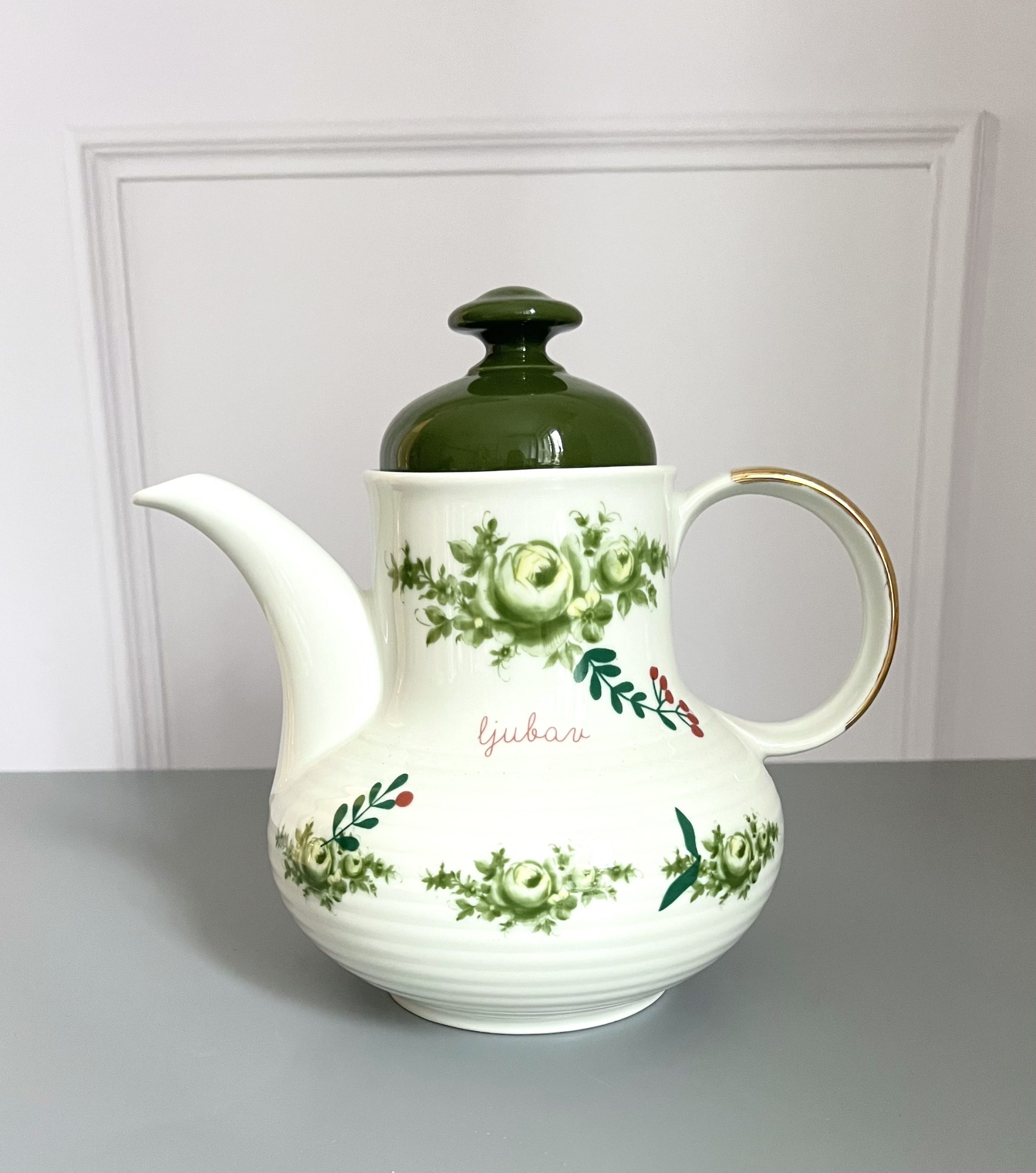 Ekskluzivan poklon Slavlje ljubavi čajnik, mozete pokloniti sebi ili kao dar za venčanje. Ručno doradjen, oslikan i jedinstven-unikatni komad. Rađeno po poprincipu reciklaže jer su stari odbačeni predmeti oživljeni novim dizajnom.Nudimo Vam da ga kombinujete sa soljicama i tanjirima ili mogucnost personalizovanog pakovanje .