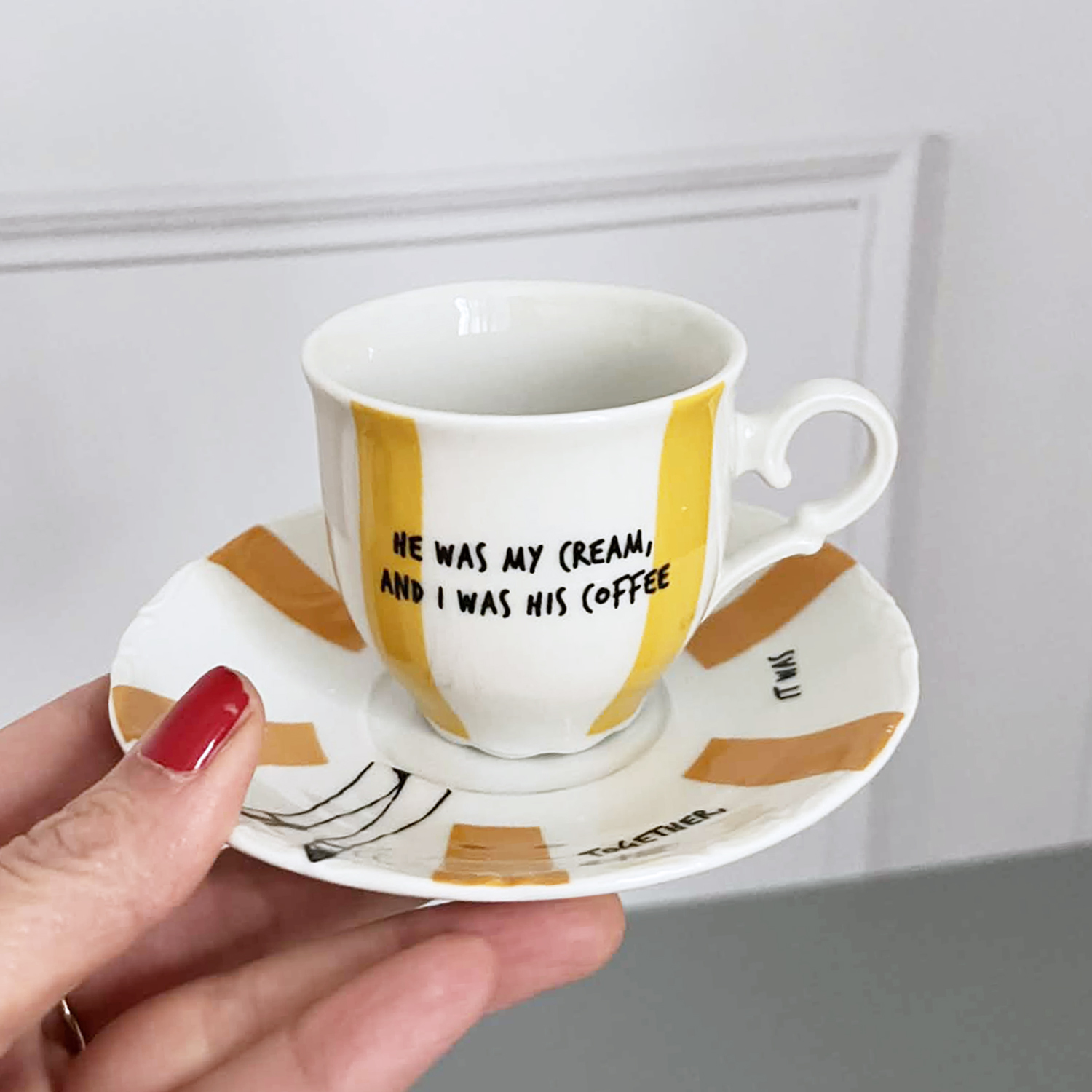 Remake porcelan je savršeno nesavršen – svaki naš proizvod je ručno pravljen i poseban na svoj način. Drška šolje je pozlaćena 24-karatnim zlatom.