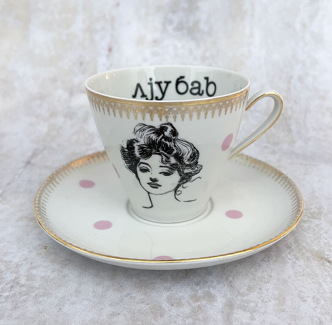 Ovu šolju smatramo i našim klasikom. U svojoj igri sa prevodom, negde izmedju svih jezika koje koristimo i pisama sa kojima se sluzimo nastala je naša omiljena šolja Ljubav.