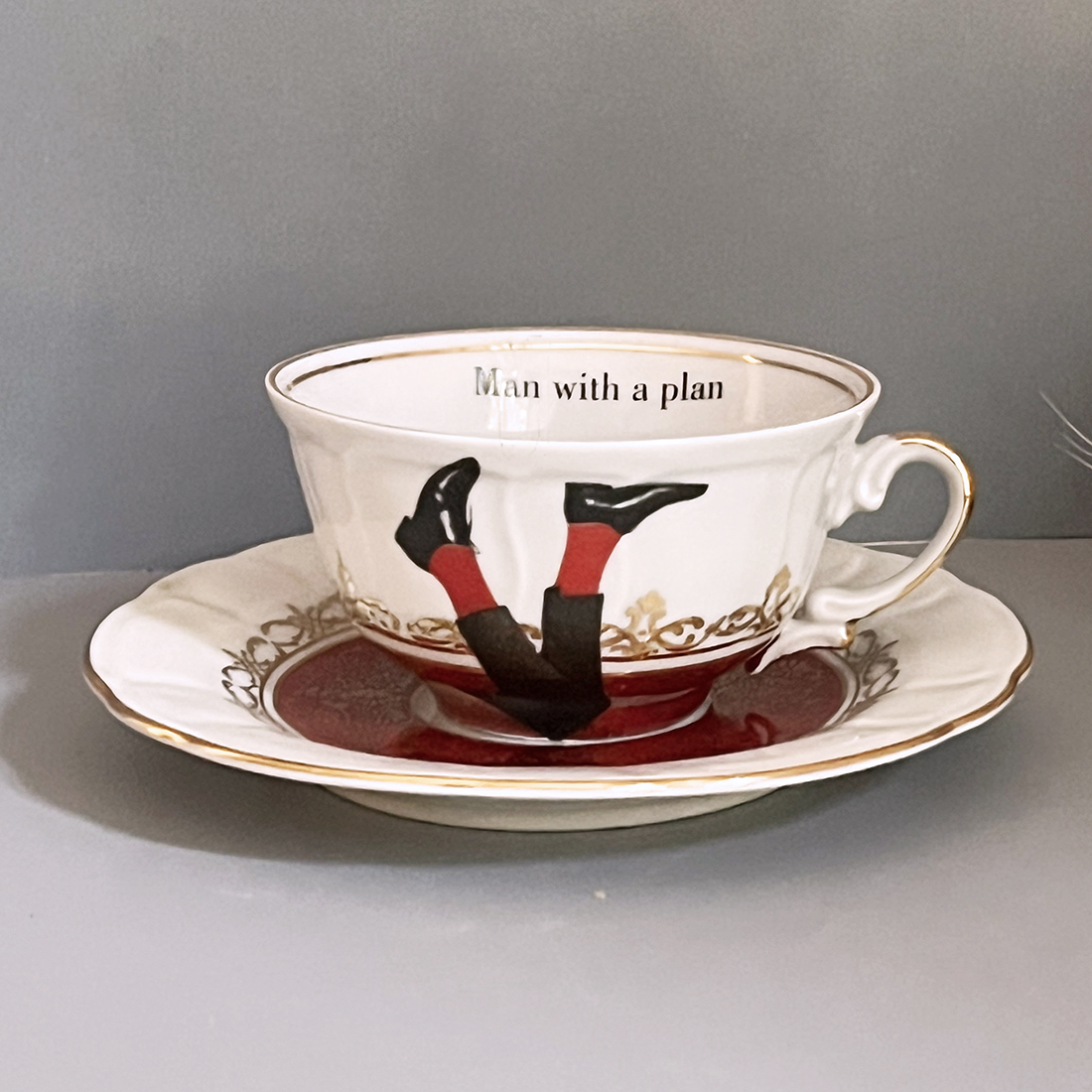 Tražiš originalan i simpatičan poklon za svog muškarca? Ova vintage šolja je baš ono što ti treba! Dizajnirana sa stilom i duhom, sa natpisom “Man with a plan” i ilustracijom muških nogu u elegantnim cipelama i neodoljivim crvenim čarapama, ova šolja je spoj retro šarma i moderne zabave.