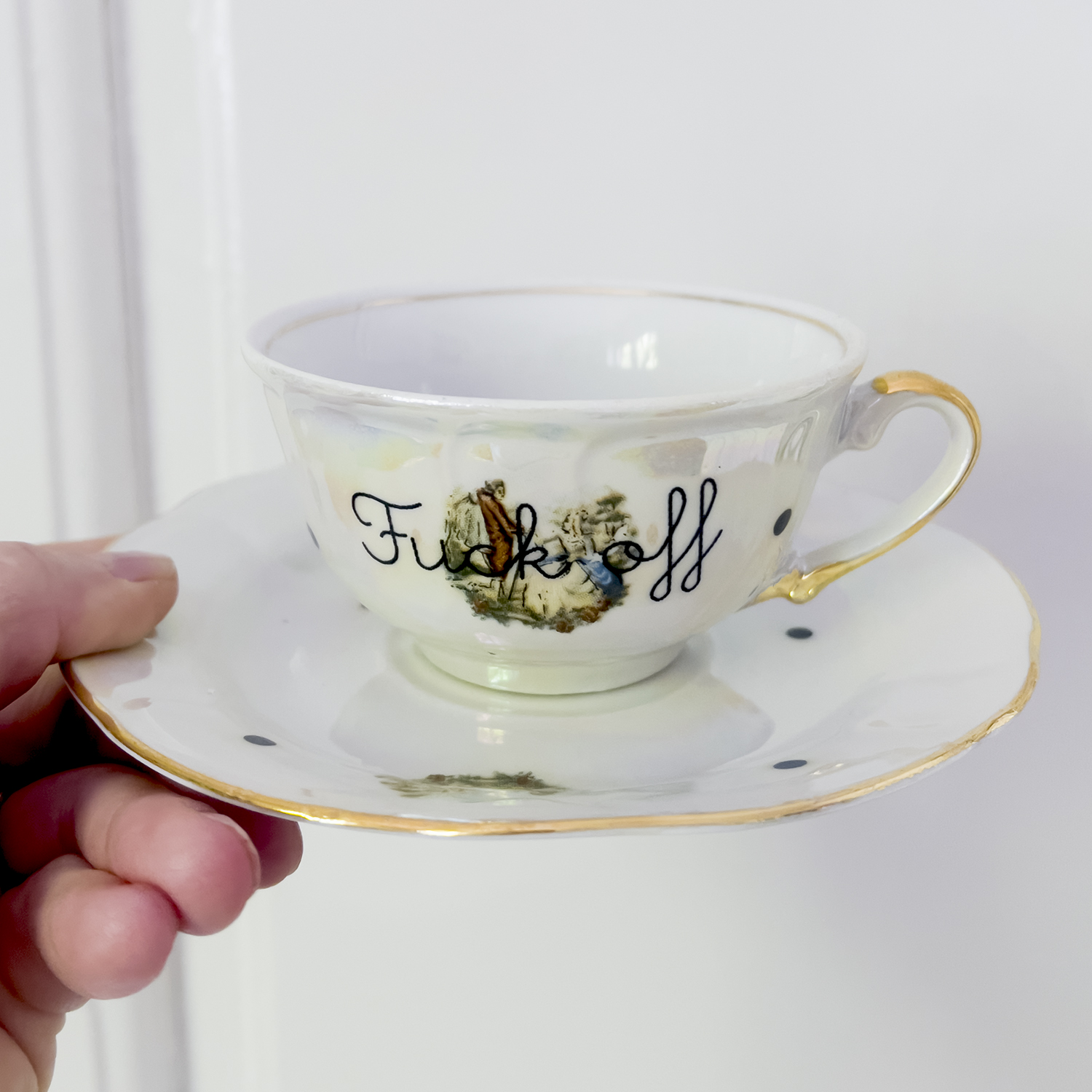 Remake porcelan je savršeno nesavršen – svaki naš proizvod je ručno pravljen i poseban na svoj način. Drška šolje je pozlaćena 24-karatnim zlatom.