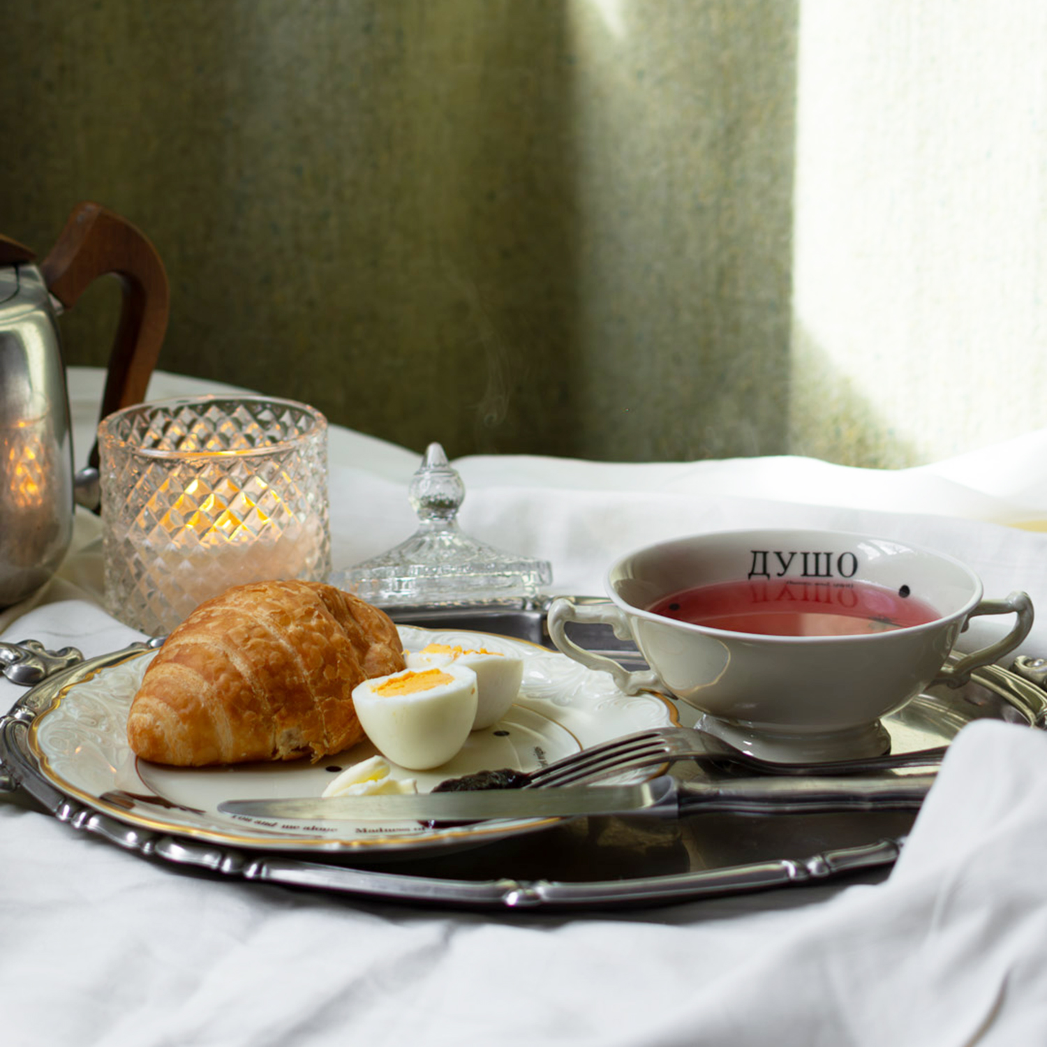 Unikatni set: redizajnirana šolja sa tacnom i desertnim tanjirom
