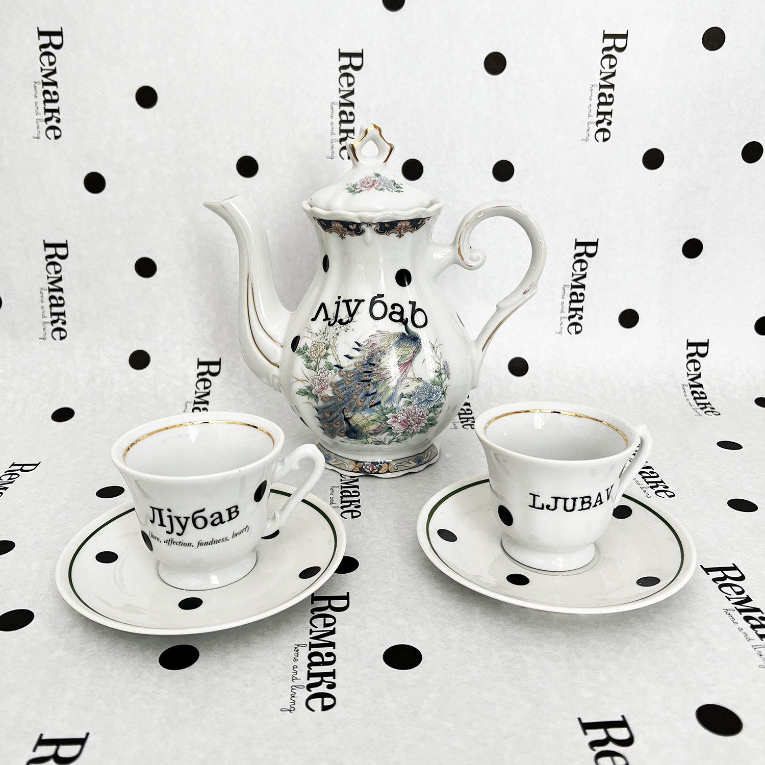 • Set čajnik + 2 šolje sa nadpisom Ljubav