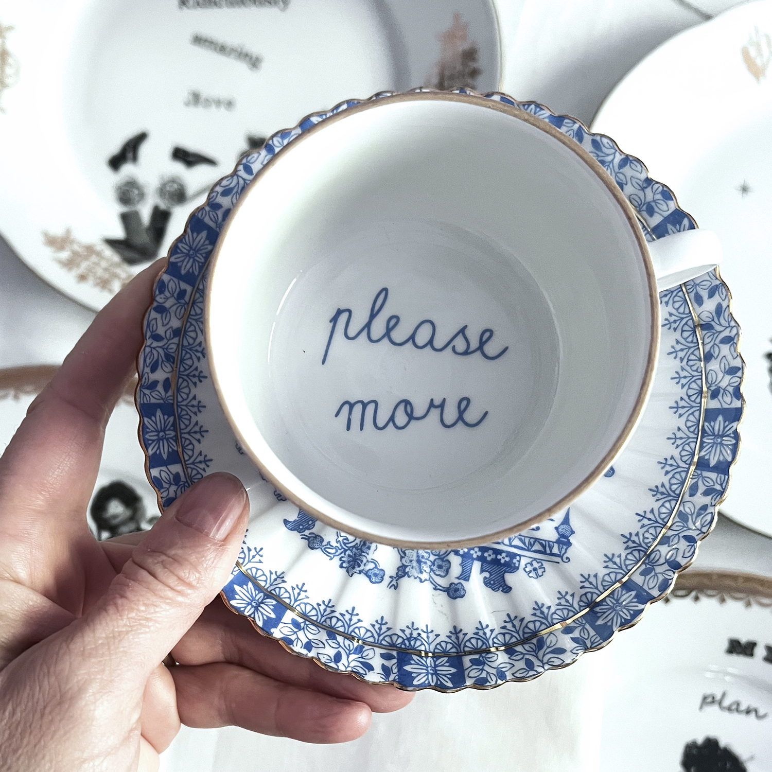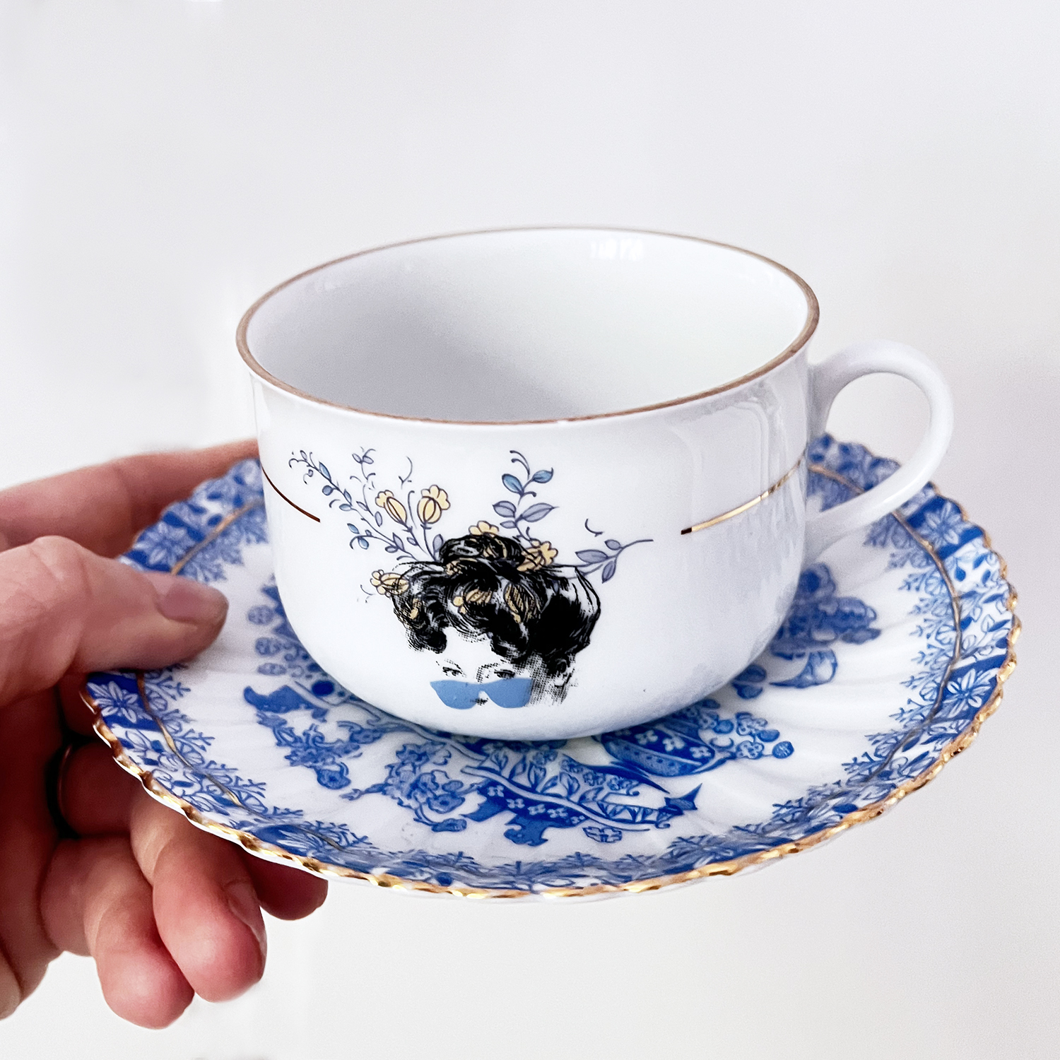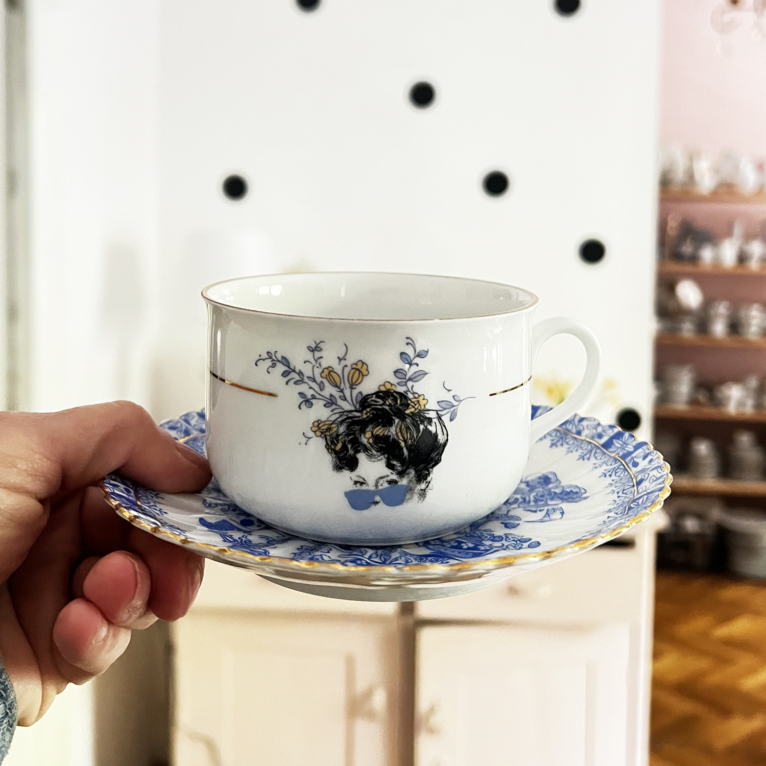 Remake porcelan je savršeno nesavršen – svaki naš proizvod je ručno pravljen i poseban na svoj način. Drška šolje je pozlaćena 24-karatnim zlatom.